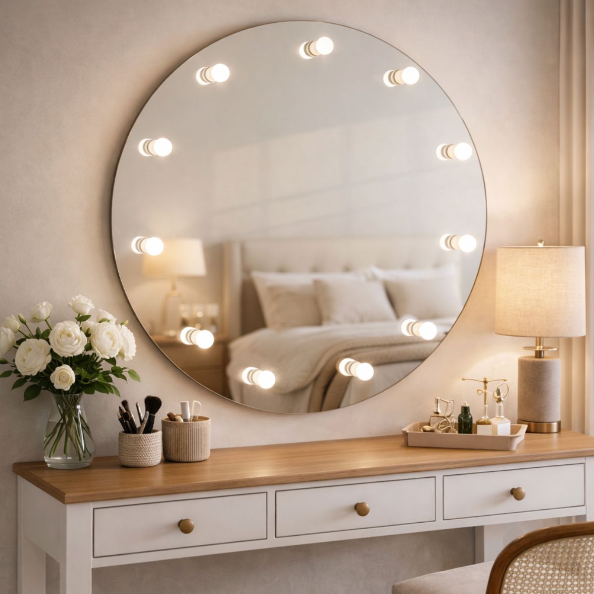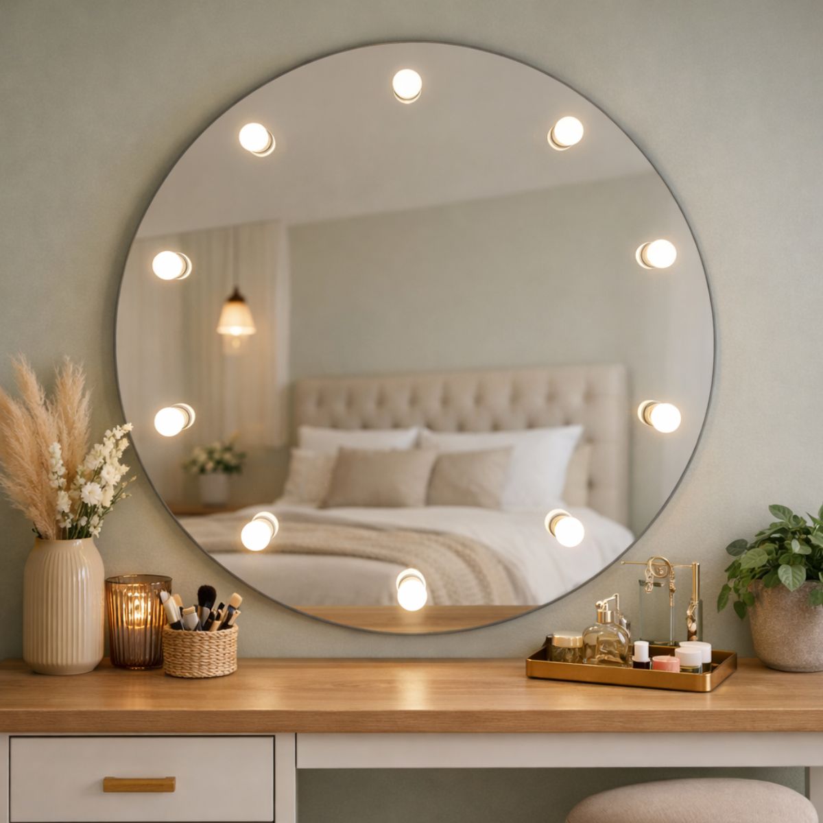 „HOLLYWOOD NAOMI“ veidrodis – tai klasikinio Holivudo stiliaus ir modernaus minimalizmo derinys, skirtas tiksliam makiažui, šukuosenų formavimui ir kasdieniam naudojimui. Tinka tiek namų kosmetiniam staliukui, tiek profesionaliam naudojimui grožio salonuose ir kirpyklose.