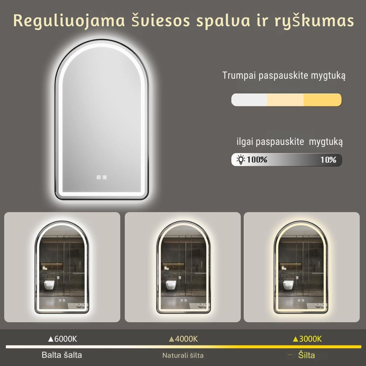LED veidrodis 50x70 cm „Venus black“ – pusiau ovalus, su apšvietimu ir šildymo funkcija