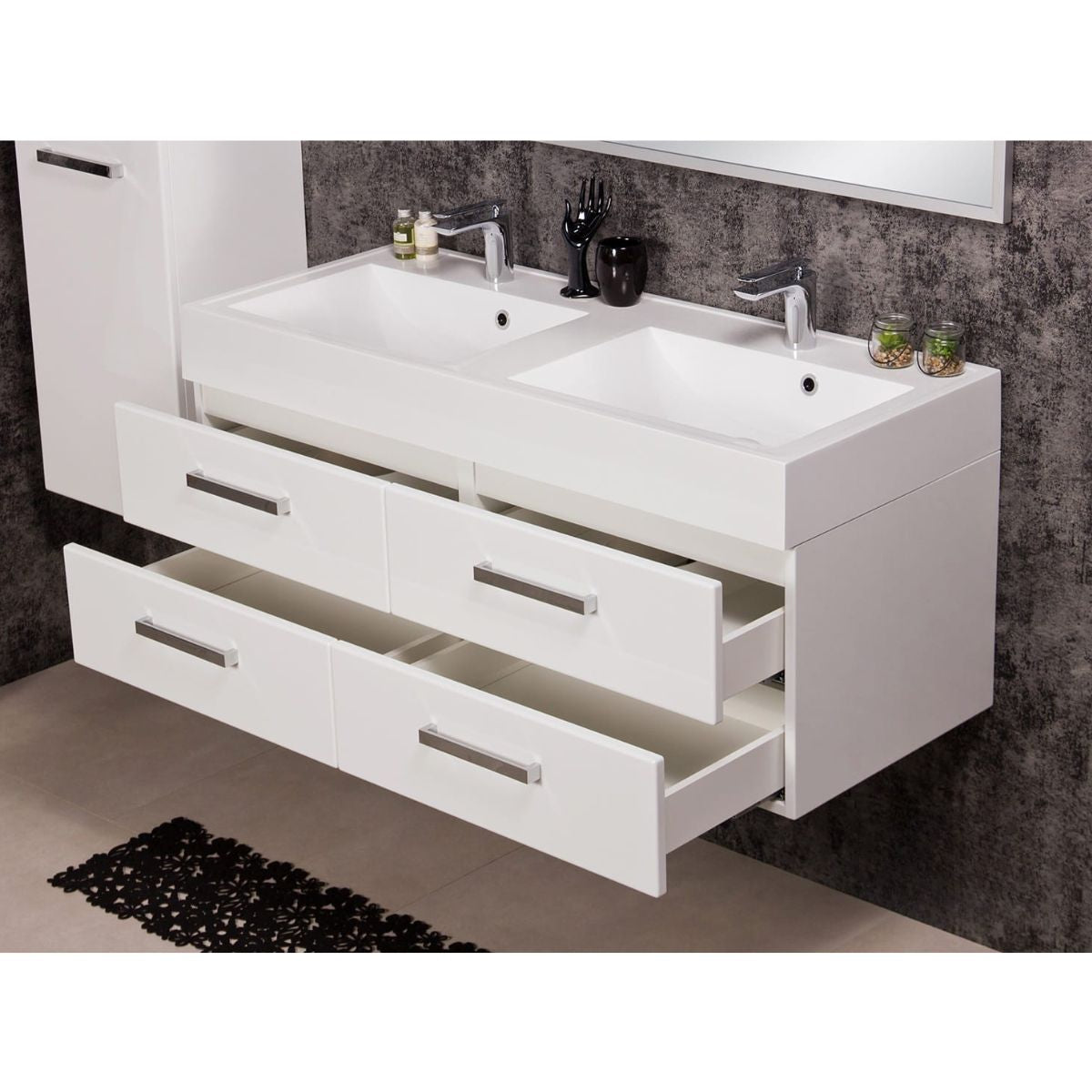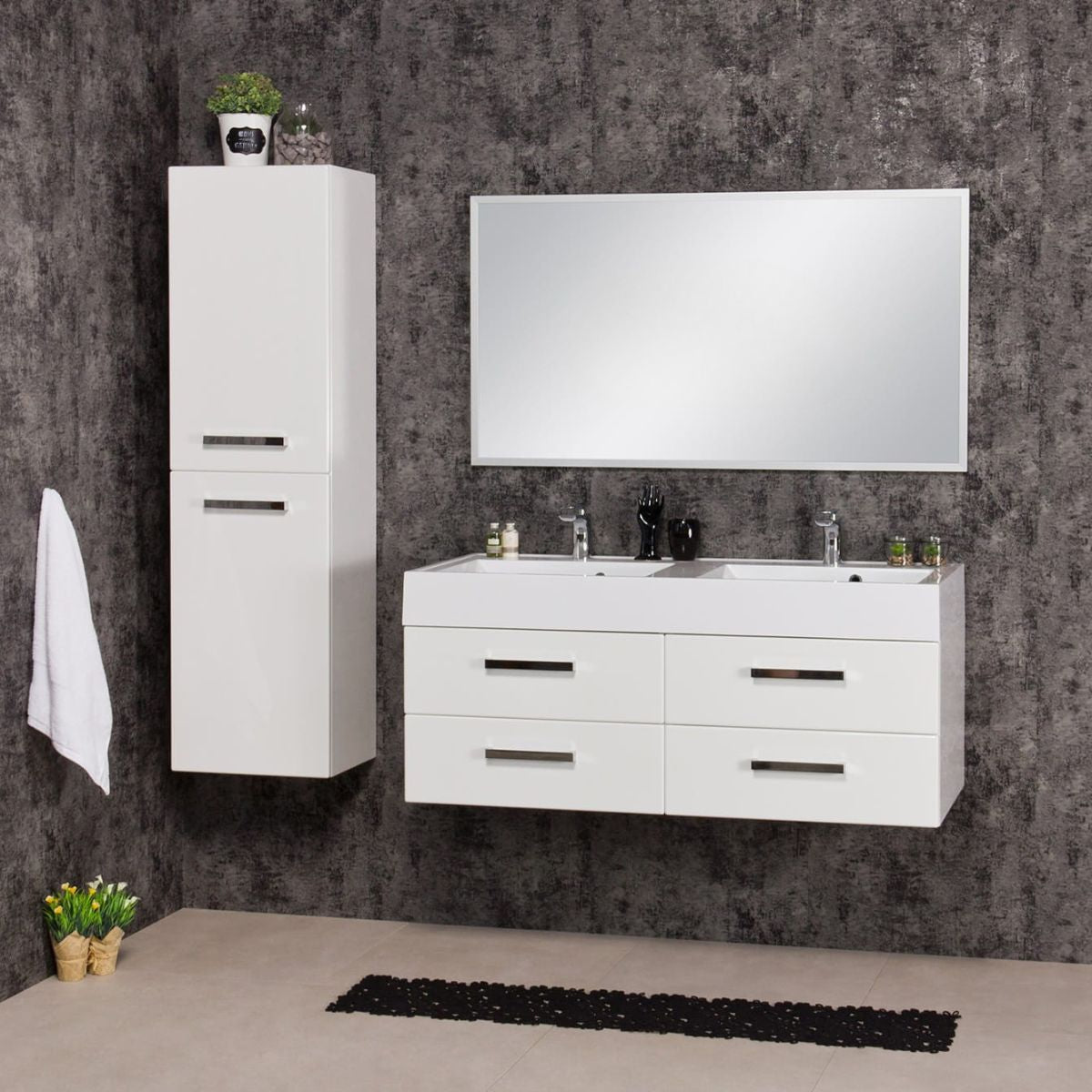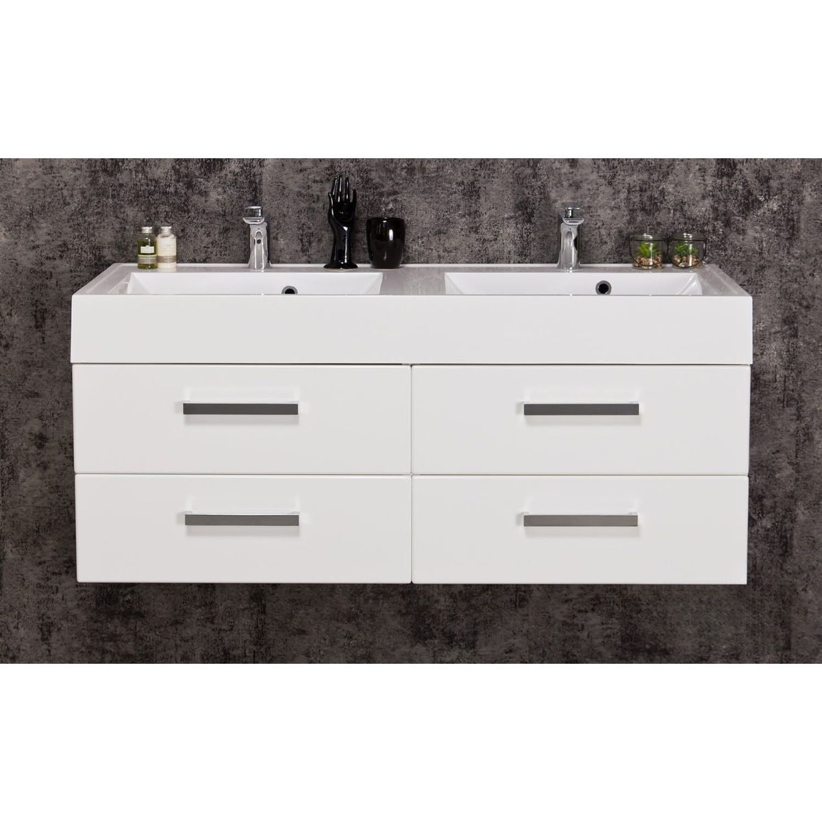 Balta praustuvo spintelė su dvigubu dolomito kriaukle. Matmenys: 40 x 120 x 39 cm. Chromuotos rankenėlės ir klasikinis dizainas suteikia spintelei madingo žavesio ir puikiai tinka moderniems vonios kambariams.