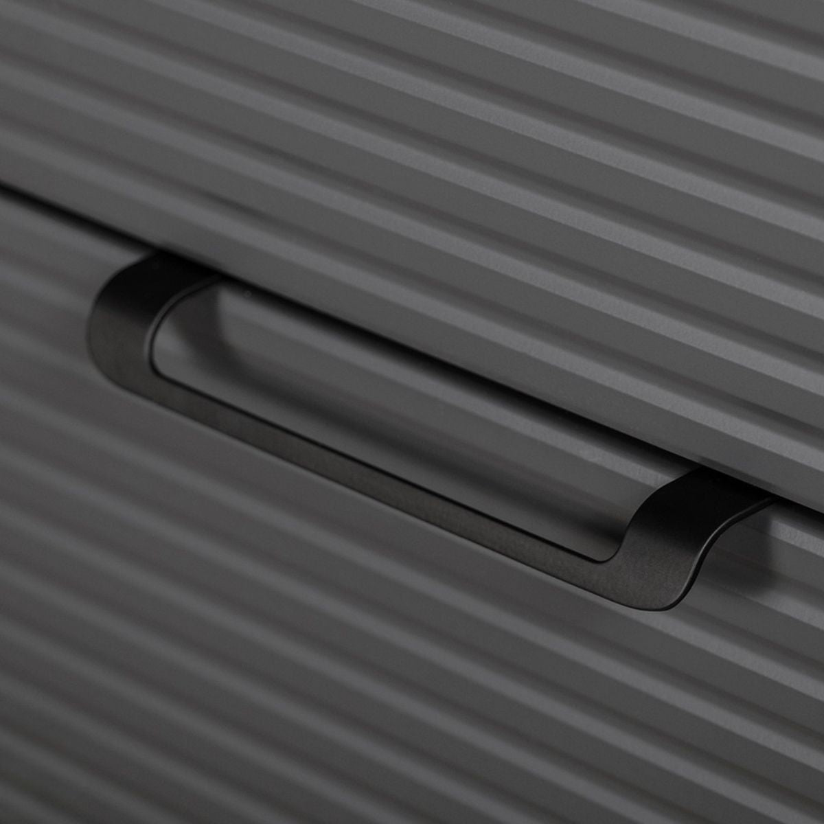 Pailgas stalviršis ir švelniai užapvalinti kraštai suteikia baldui lengvumo bei modernumo. Juodos rankenėlės subtiliai kontrastuoja su antracito spalva, pabrėždamos elegantišką charakterį.