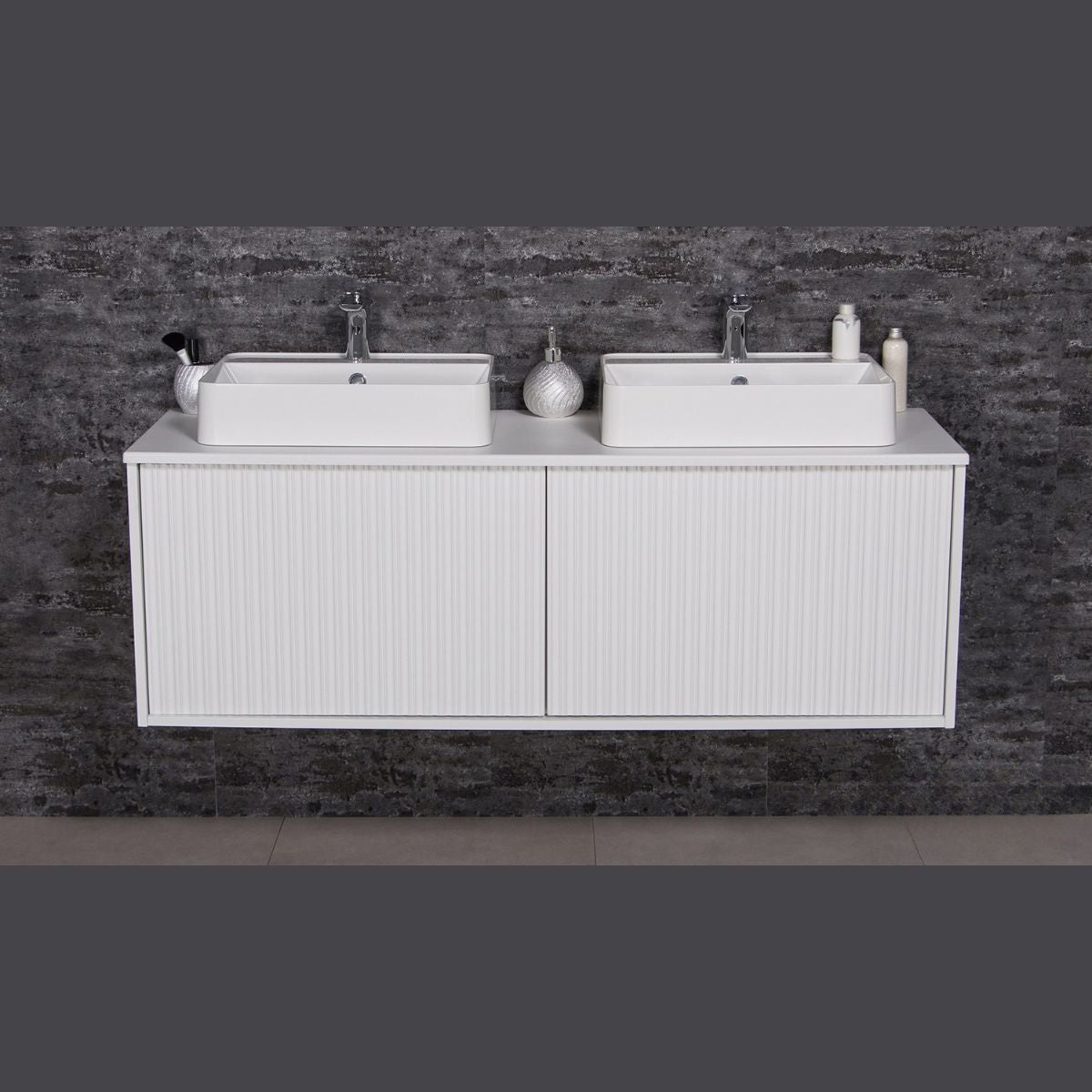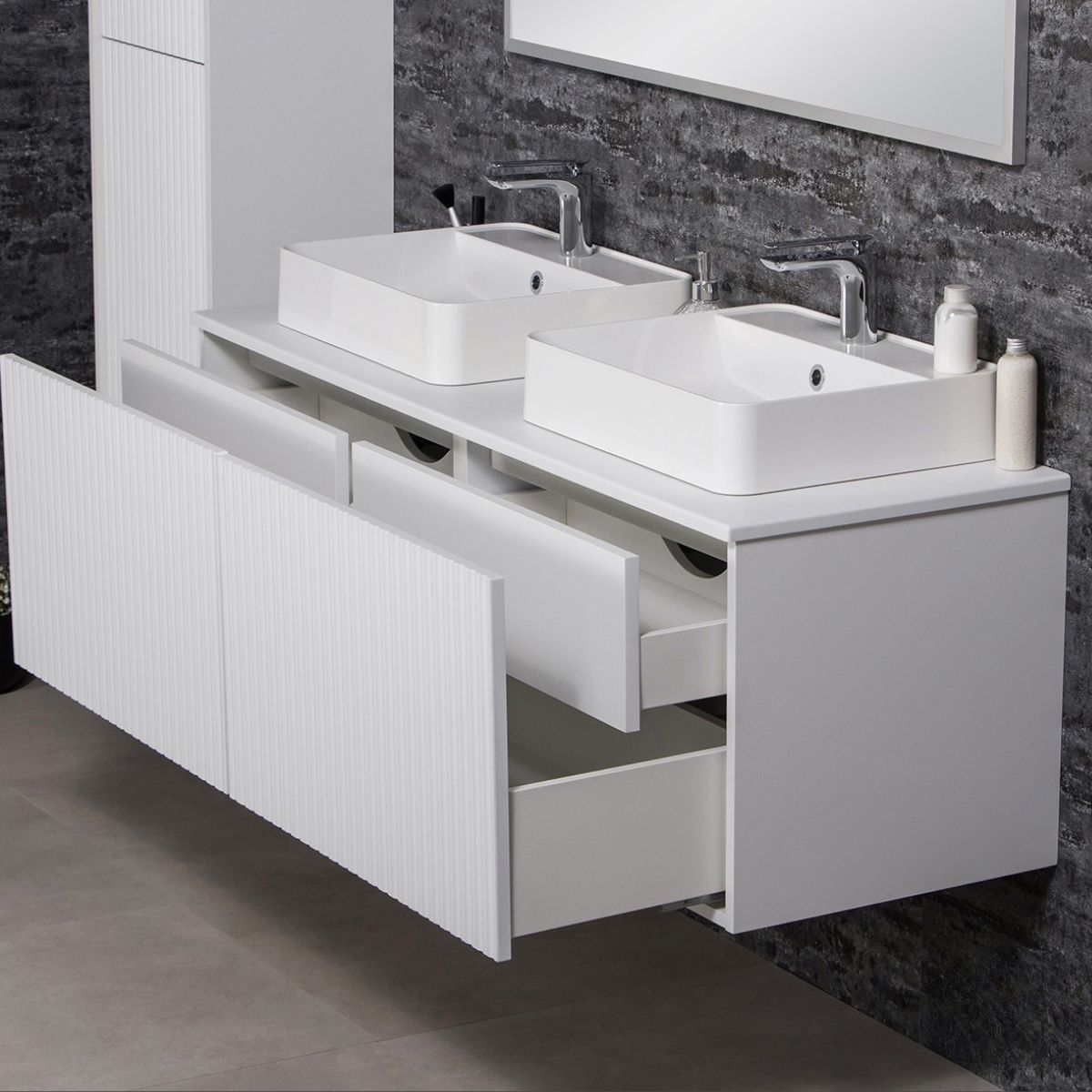 TRETTO balta vonios spintelė 140 cm su stalviršiu ir dviem kriauklėmis