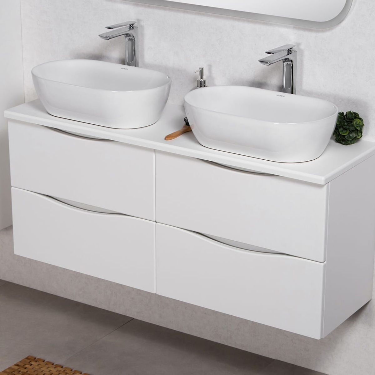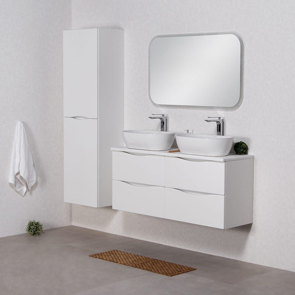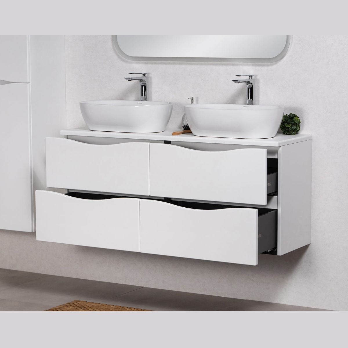 Balta vonios spintelė 120 cm ONDA su dviem kriauklėmis