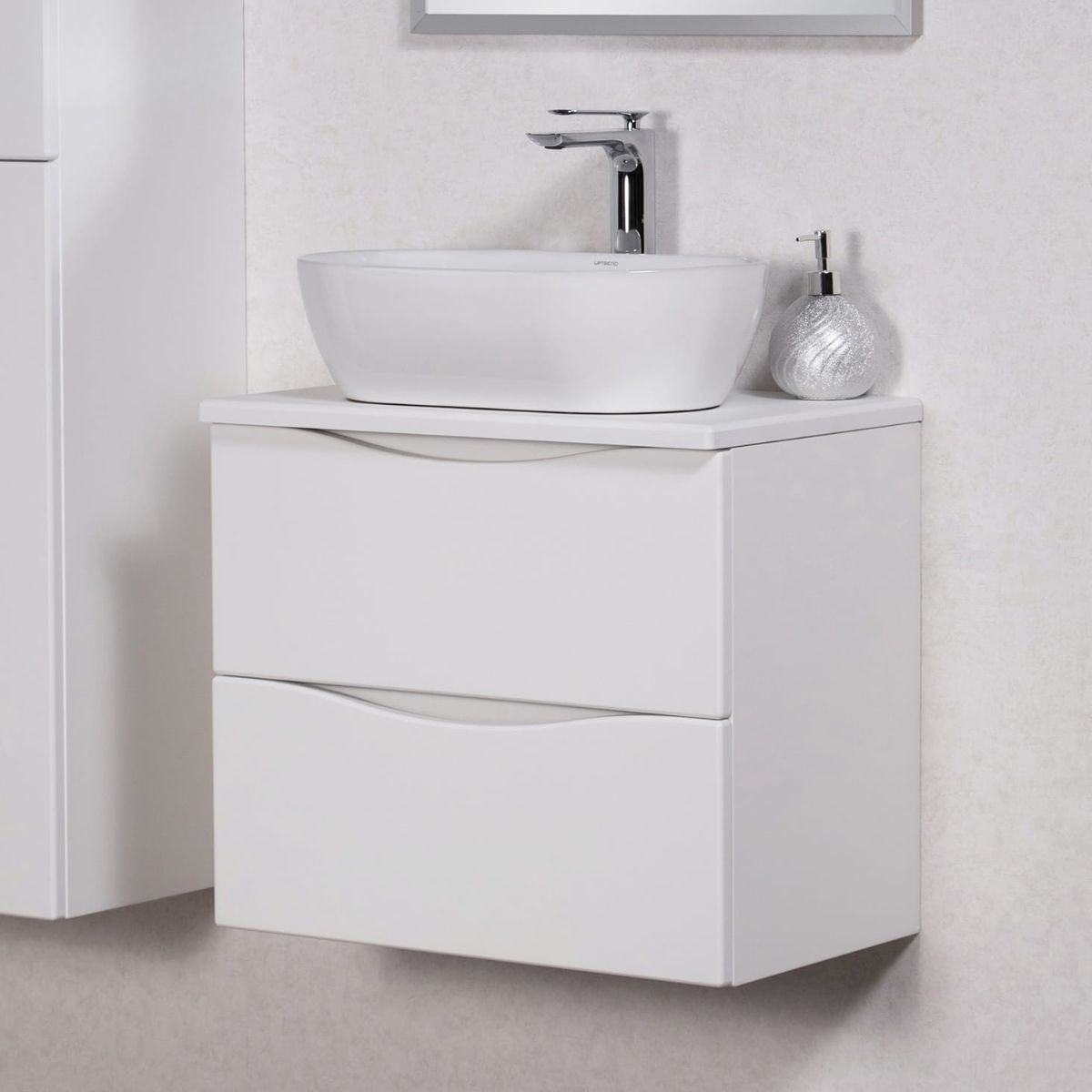 Ši moderni „Onda“ serijos vonios spintelė – tai tobulas funkcionalumo ir minimalistinio dizaino derinys. Dėl 60 cm pločio ji puikiai tinka tiek mažesniems, tiek didesniems vonios kambariams, siūlydama praktišką daiktų laikymo vietą ir elegantišką dizainą. Matinės baltos spalvos spintelė suteikia interjerui gaivumo ir subtilios elegancijos. Paprastą, minimalistinę formą papildo aptakios, grioveliais išraižytos rankenos, diskretiškai integruotos į stalčių kraštus, todėl spintelės priekinė linija išlieka vientisa, lygi, be nereikalingų detalių.