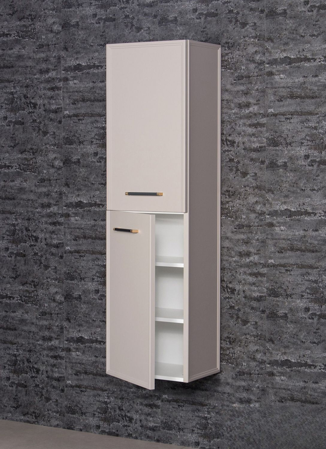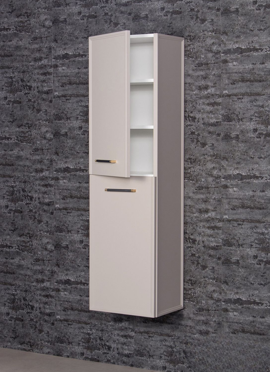 ANTE kašmyro spalvos vonios spintelė – tai stilingas, praktiškas ir vizualiai harmoningas sprendimas vonios kambariui, sukurtas derėti su kitais to paties dizaino serijos baldais. Jos dizainas išsiskiria subtiliais frezavimais, esančiais korpuso ir durelių kraštuose, kurie sukuria klasikinės elegancijos pojūtį.