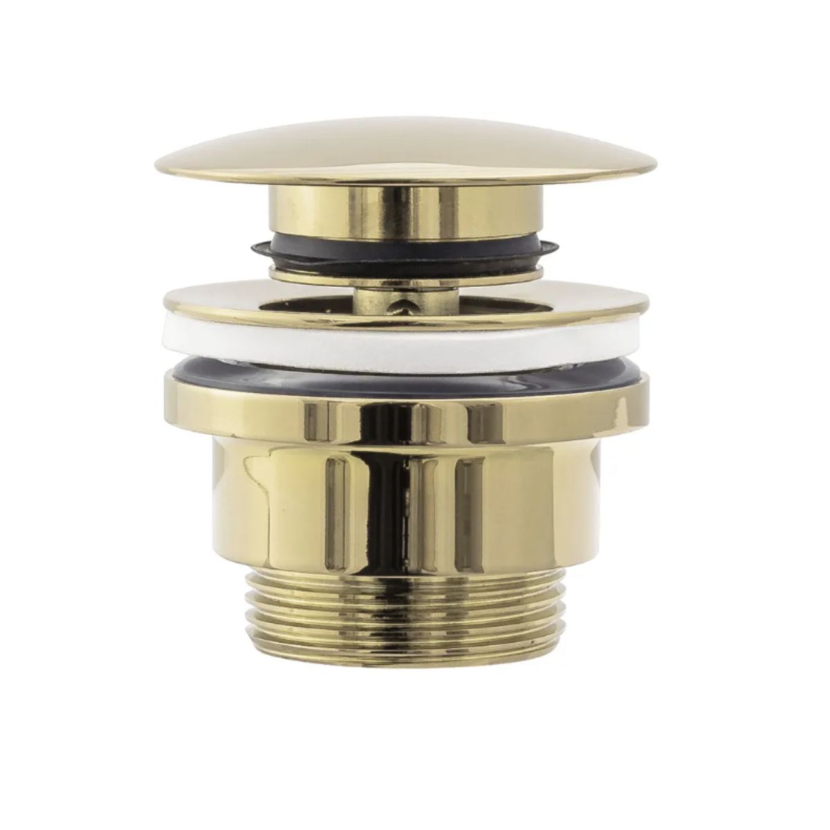 Aukso spalvos „Click-clack“ tipo kamštis, pagamintas iš tvirto žalvario, yra universalus sprendimas tiek kriauklėms su perpildymo anga, tiek be jos. Dėl pažangios PVD dangos technologijos paviršius yra atsparus korozijai, blukimui ir spalvos pokyčiams, užtikrinant ilgalaikį estetinį vaizdą ir patikimumą.