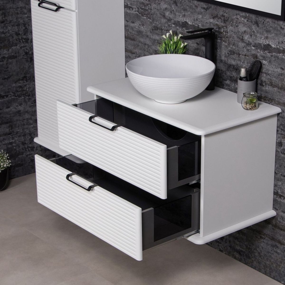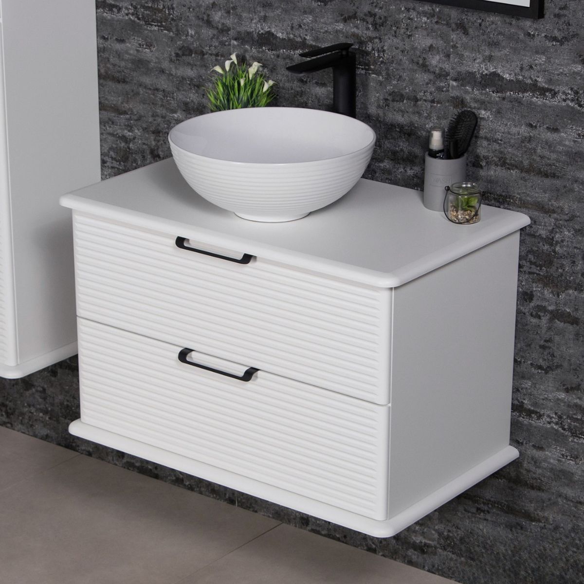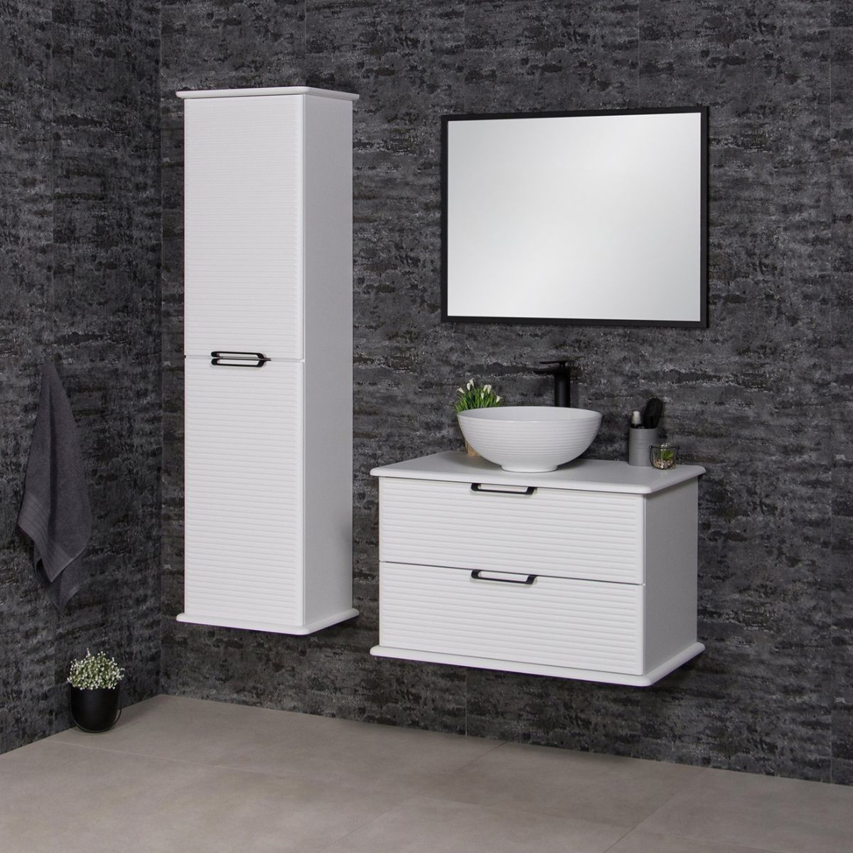 „Libra 80 cm“ vonios spintelė – tai modernus ir elegantiškas matinės baltos spalvos baldas , sukurtas atsižvelgiant į funkcionalumą ir estetiką. Jos fasaduose yra šiai kolekcijai būdingi horizontalūs išpjovimai, o suapvalinti, pailgi kraštai suteikia visam baldui subtilų, erdvų vaizdą.